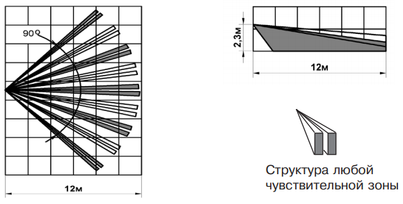 - формирует объемную зону обнаружения;