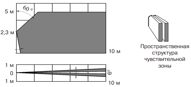 | Угол зоны (Охранные датчики) | 8° поверхностная |