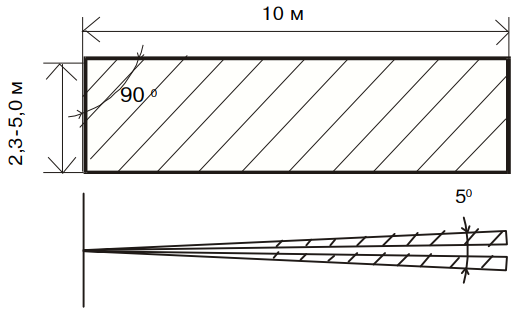 - 45* в вертикальной плоскости и 5* в горизонтальной плоскости на максимальной дальности для извещателя ИО209-8 "Фотон-6А";