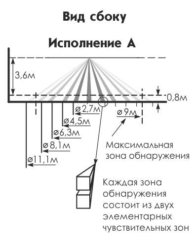 | угол зоны обнаружения в горизонтальной плоскости | 360° |